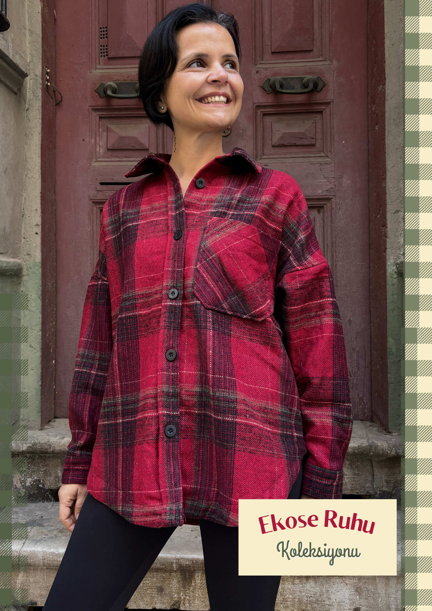 Oversize Kadın Ekoseli Oduncu Gömlek – Kırmızı
