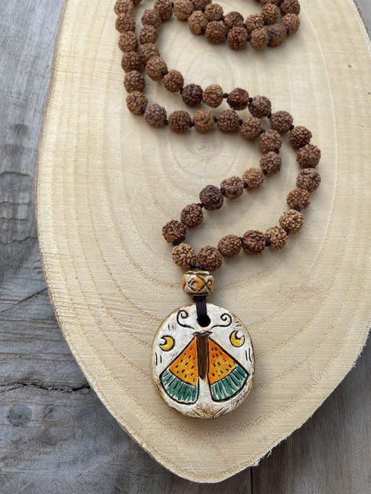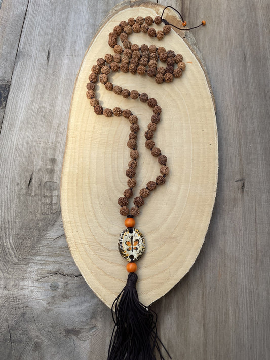 Rudraksha Meditasyon Mala Kolye - Mini Kelebek Koza Uçlu El Yapımı Kolye
