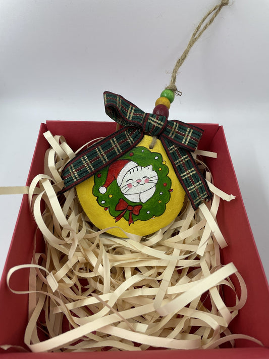 Şirin Kedi Doğal Ağaç Boyama Yılbaşı Süsü