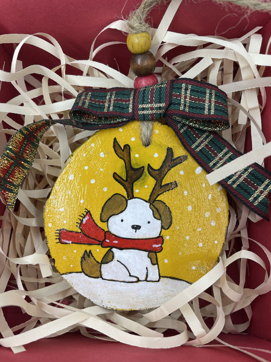 Şirin Köpekli Doğal Ağaç Boyama Yılbaşı Süsü