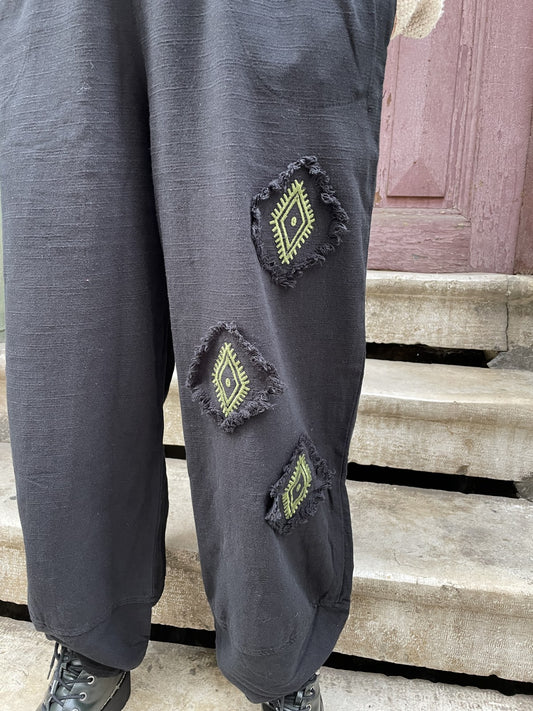 Siyah Bohem Kilim Motifli Kadın Pantolon