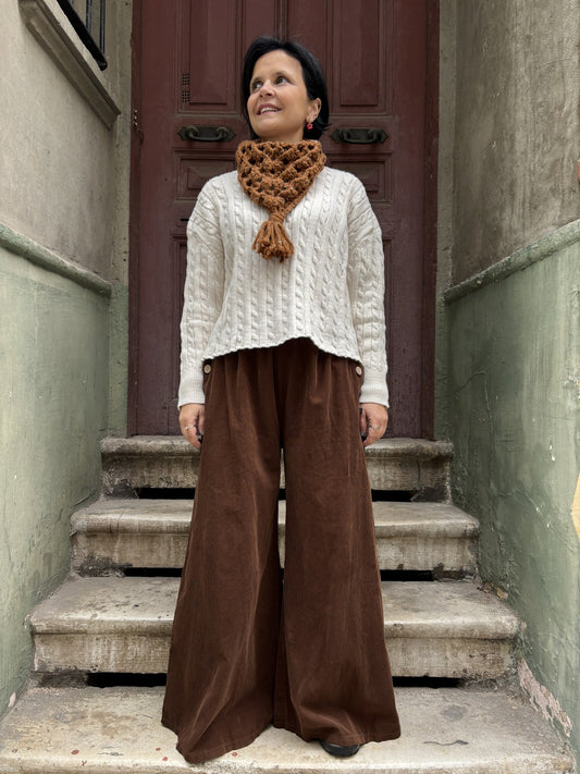 Toprak Tonları Kadife Salaş Kadın Palazzo Pantolon