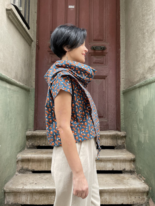 TükendiTilki Desenli Mavi Bluz