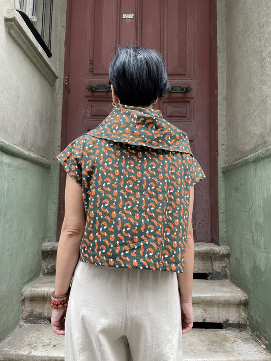 TükendiTilki Desenli Yeşil Bluz