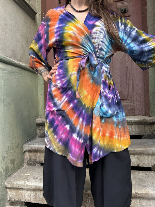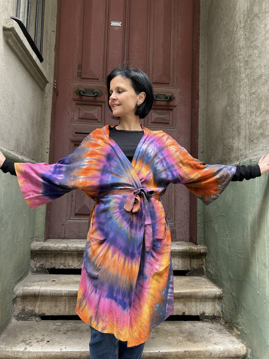 Unisex Bohem Gökkuşağı Batik Tasarım Kimono Ceket