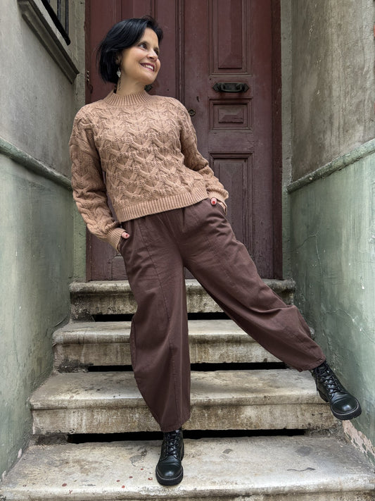 Unisex Bohem Kadın Mevsimlik Kışlık Rahat Pantolon - Kahve