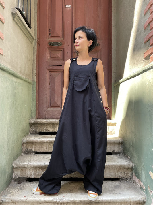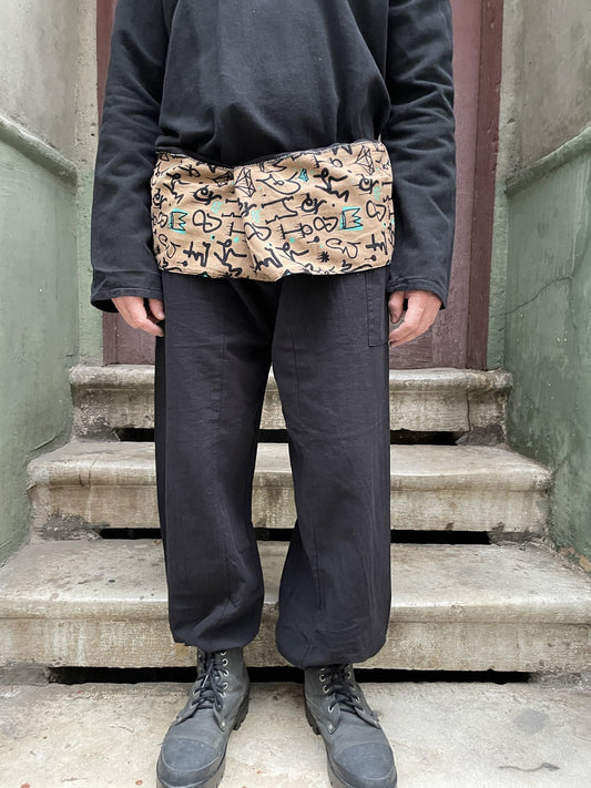 Unisex Çift Kullanımlı Siyah Thai Balıkçı Pantolon