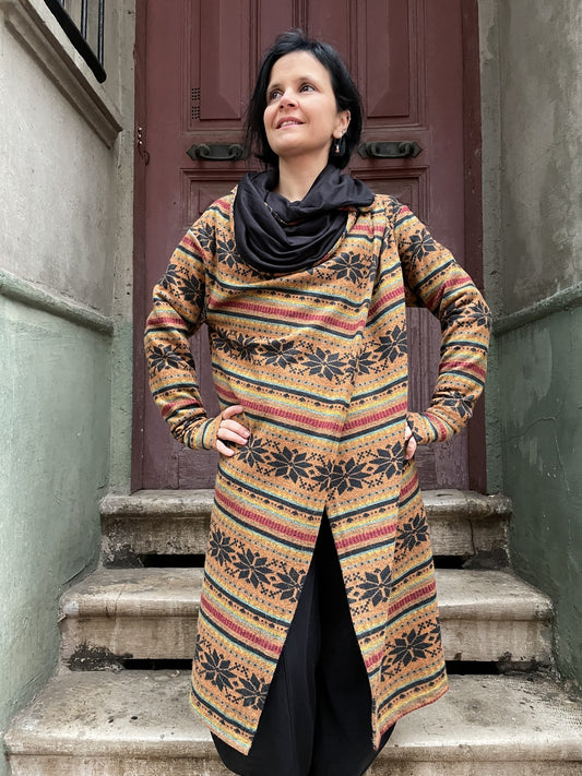 Unisex Bohem Toprak Dökümlü Yaka Etnik Desenli Hırka Bluz