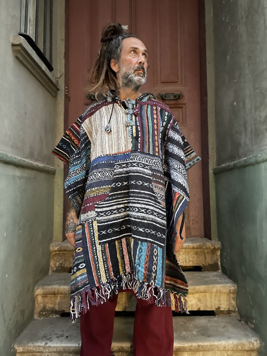 Unisex El Yapımı Baja Patchwork Nepal Gheri Panço - Bohem ve Etnik Tarzda Tek ve Özel
