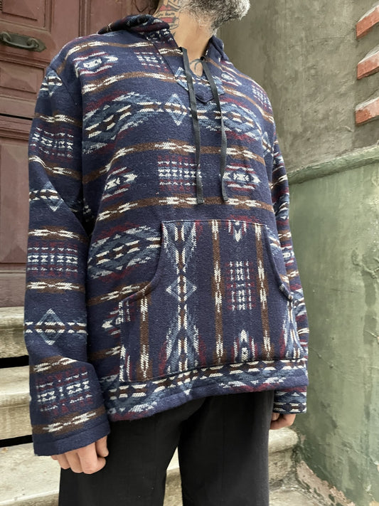 Unisex Laci Etnik Desenli Kışlık Kapüşonlu Sweatshirt