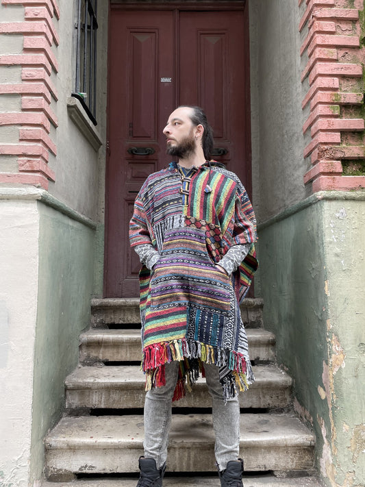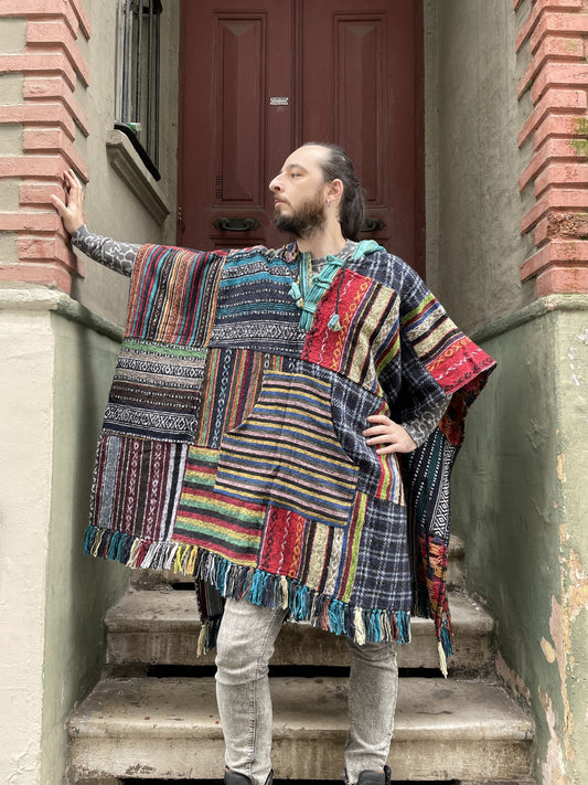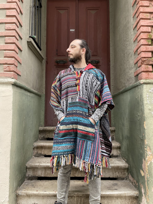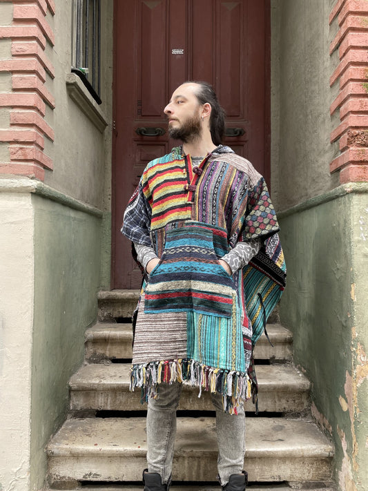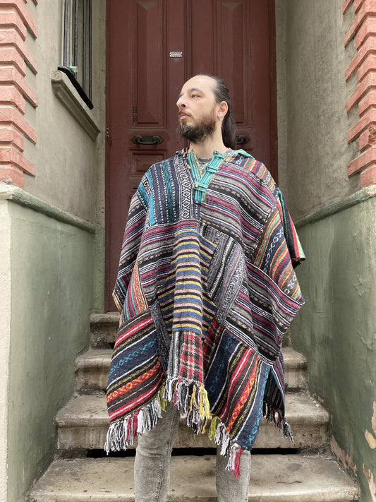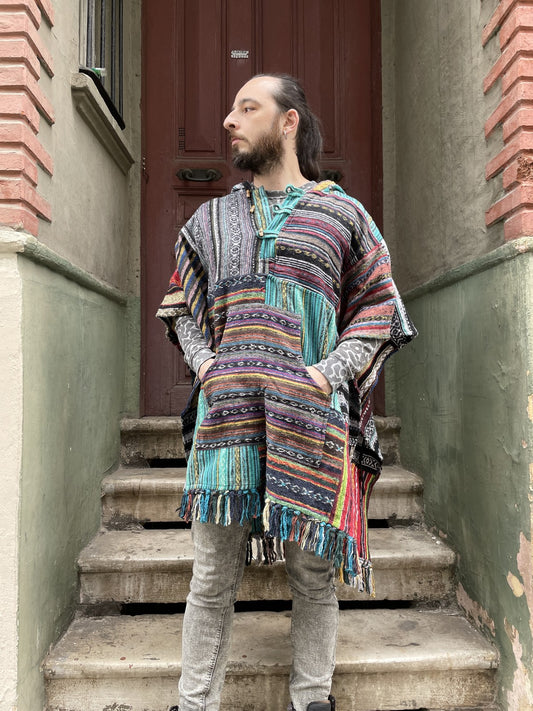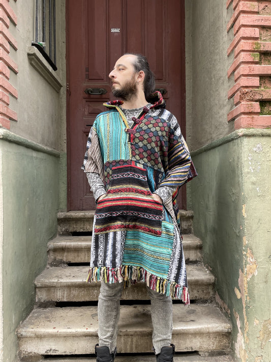 Unisex Nepal Gheri Mavi Turkuaz Panço