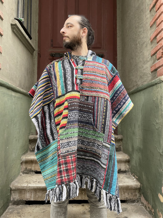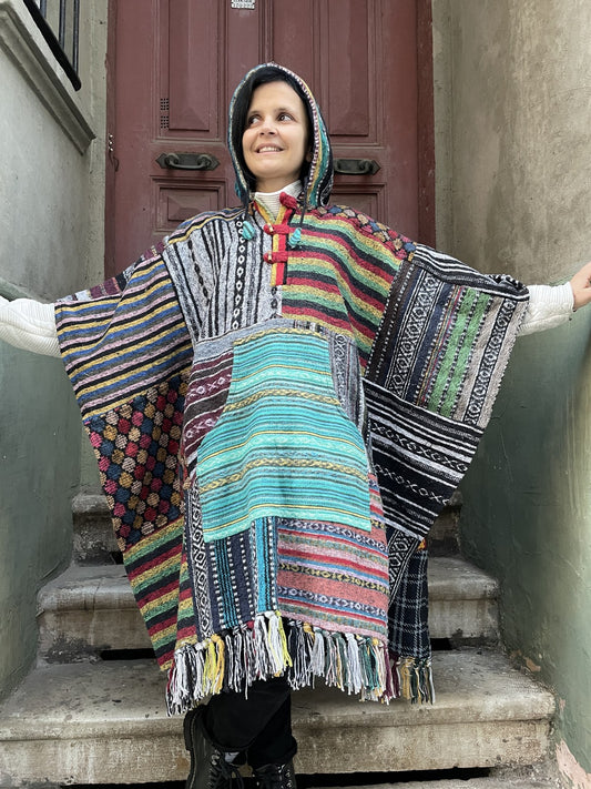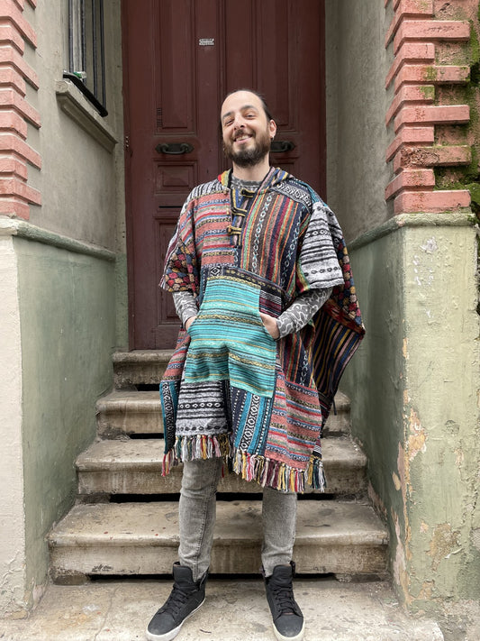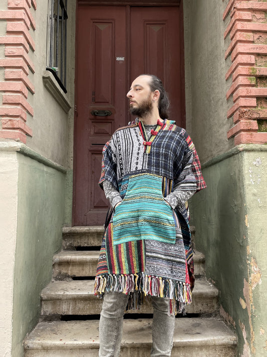 Unisex Nepal Gheri Yeşil Mavi Panço
