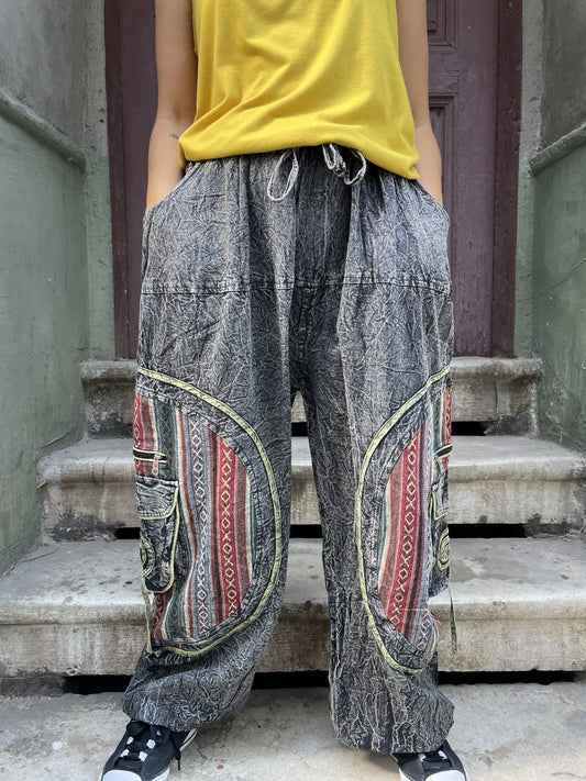 Unisex Nepal Taşlanmış Pantolon – Cepli, Rahat ve Bohem Tarz