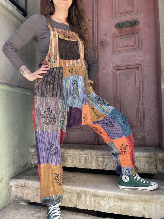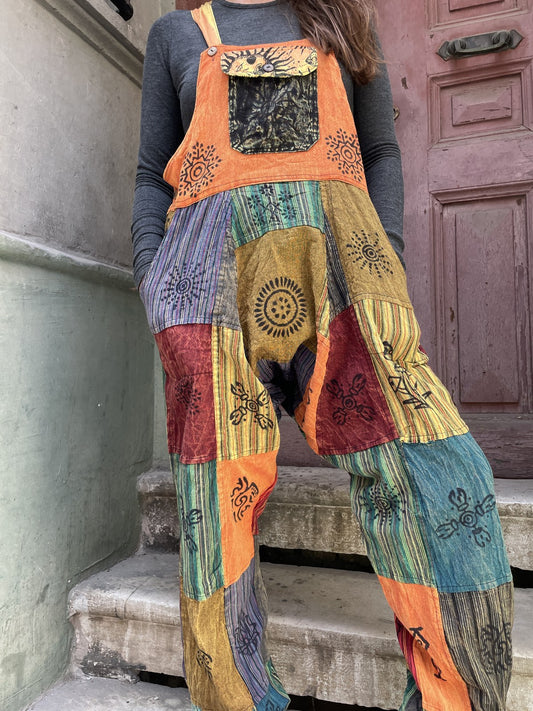Unisex Soft Baskılı Nepal Patchwork Tulum