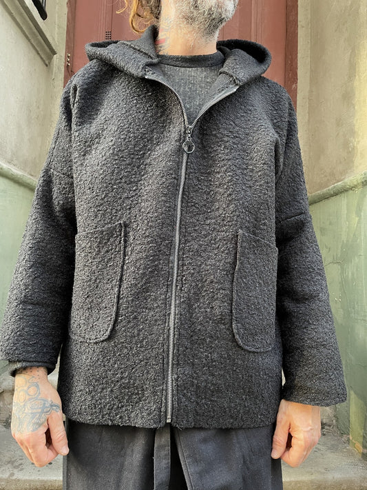 Unisex Siyah Bohem Salaş Kapşonlu İtalyan Kaban Mont