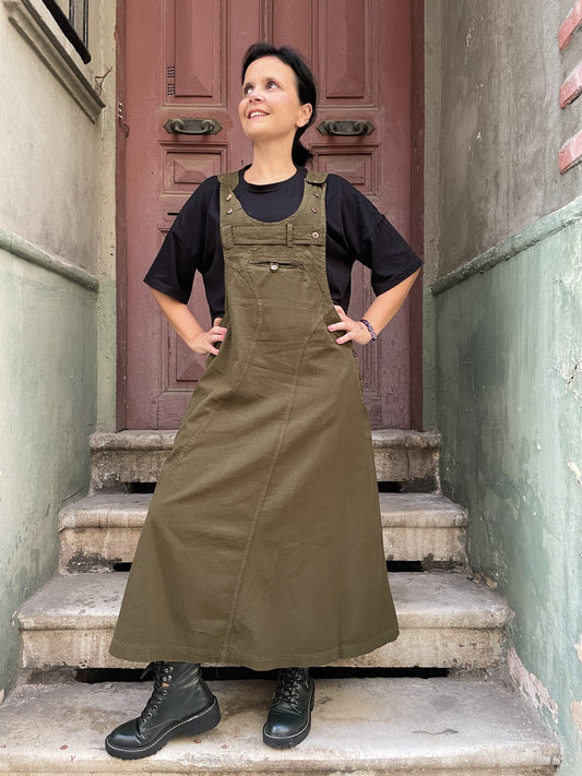 Unisex Yeşil Nepal Salopet Elbise - %100 Pamuk, Rahat ve Bohem Stil