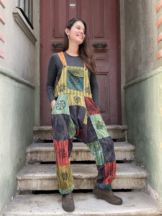 Unisex Yeşil Toprak Nepal Patchwork Tulum