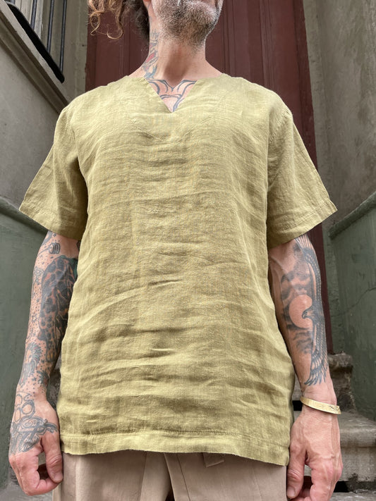 TükendiV Yaka Keten Erkek Haki Gömlek