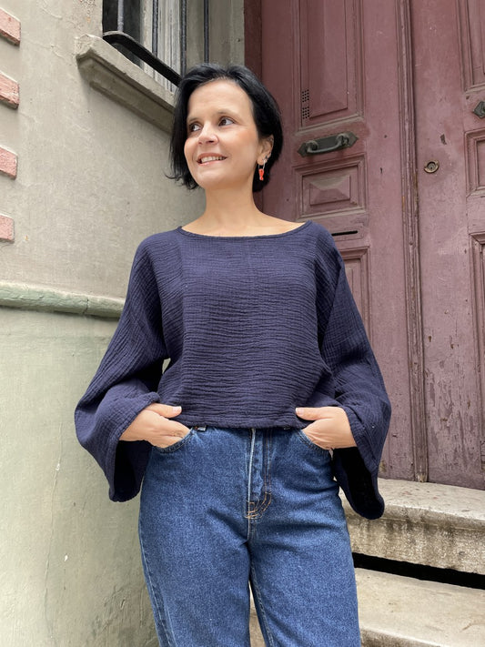 Bohem Müslin Yarasa Kol Bluz – Kırmızı, Lacivert