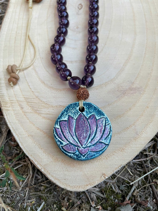 Lotus Sembolü Rudraksha Tohumu Seramik Doğal Tas Mala Kolye