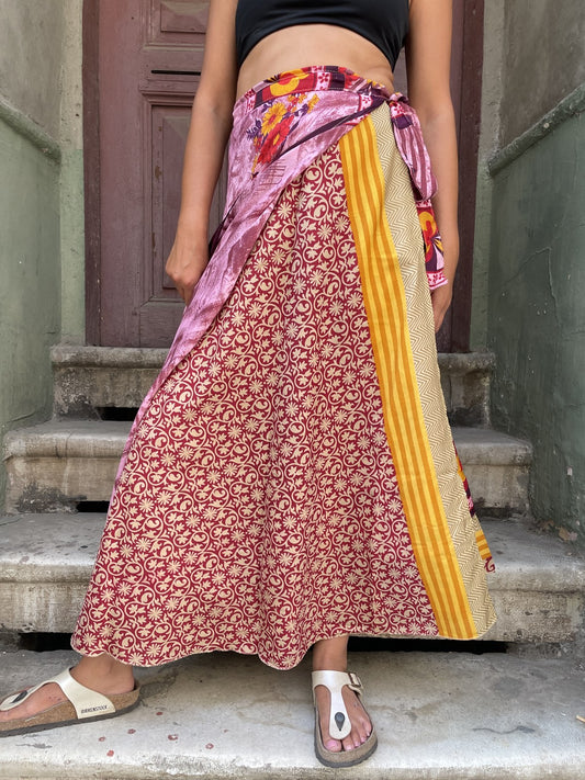 Nepal İpek Çift Taraflı Bağlamalı Etek – Her Bedene Uygun - Bordo