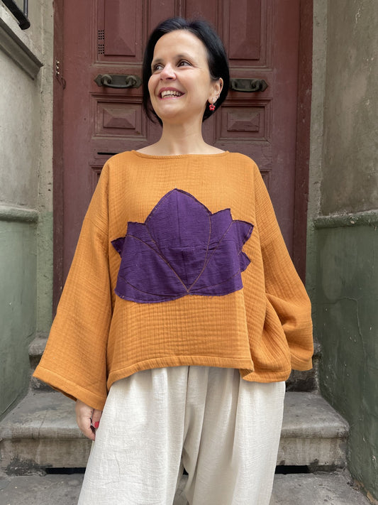 Özel Tasarım Lotus Desenli Müslin Bluz – Kiremit Mor