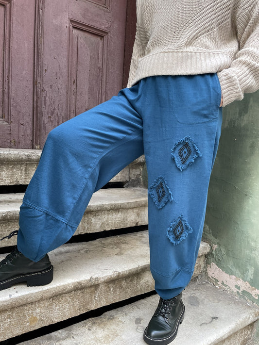 Petrol Bohem Kilim Motifli Kadın Pantolon