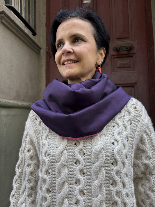 Pembe Mor Çift Taraflı Ekose & İpek Boyunluk – Kışlık, Yumuşak, Özel Tasarım