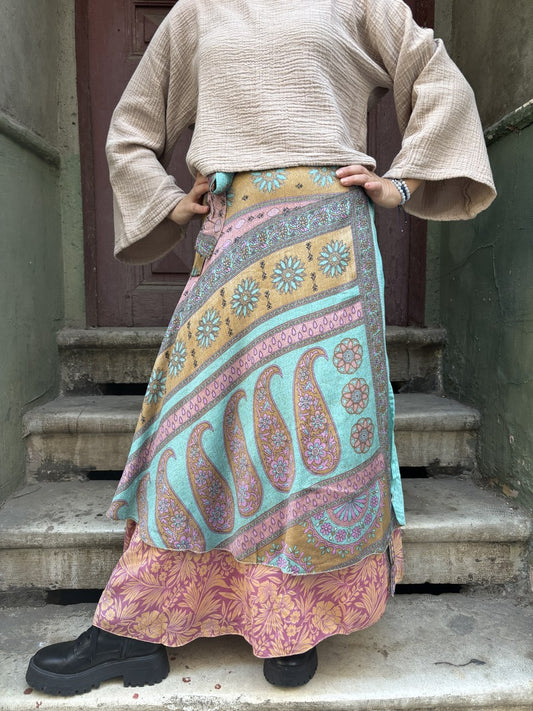 Paisley Desenli Çift Taraflı İpek Etek – El Yapımı