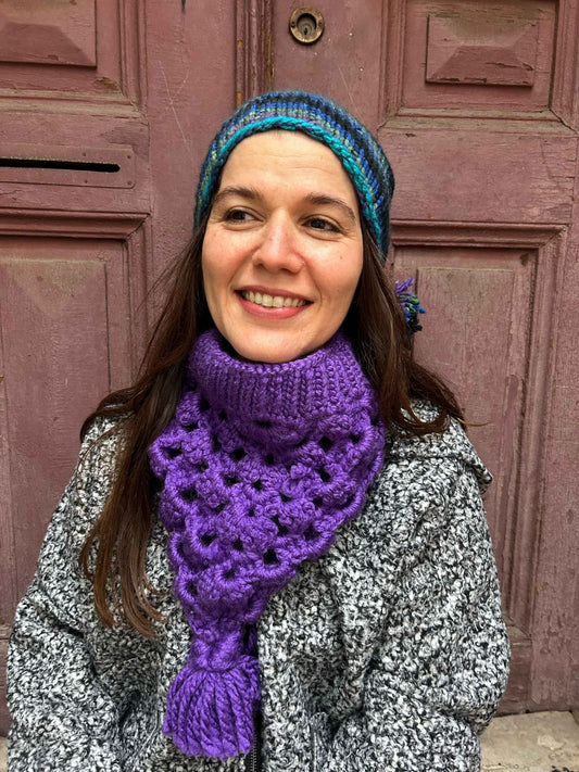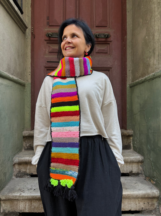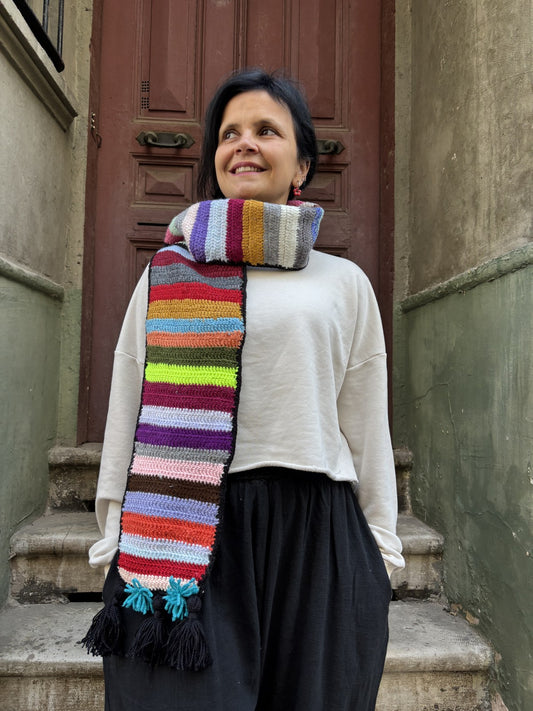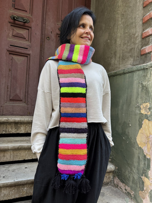 Bohem Renkli El Örgüsü Boyunluk Atkı