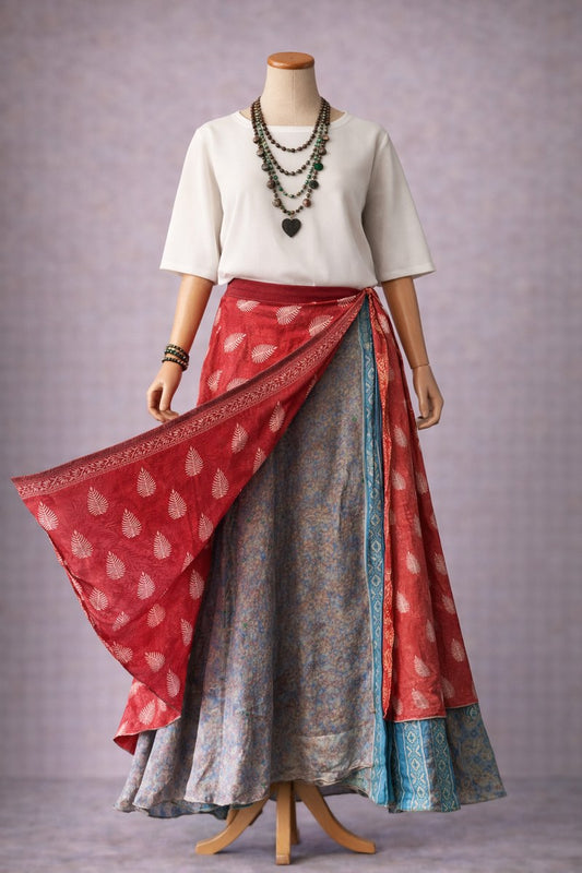 Çift Taraflı Bağlamalı İpek Etek – Soft Paisley (Nepal)