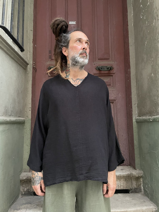 Tensel Keten Erkek Bohem Bluz Tişort – Nefes Alan Salaş Model