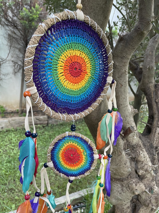 Renkli El Yapımı Bohem Dreamcatcher – Doğal Tüylerle Etnik Düşkapanı