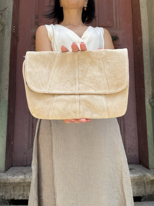 Bohem Süet Kapaklı Deri Çanta – İki Kullanım Seçeneği ile Şıklık ve Konfor - Bej