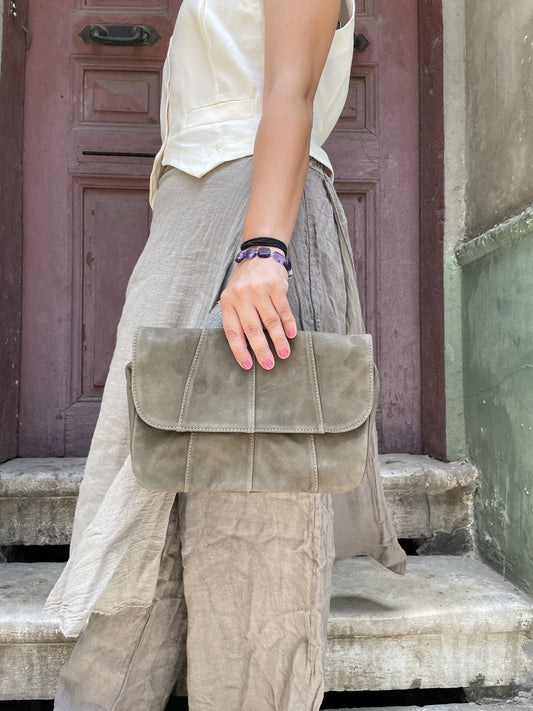 Bohem Süet Deri Kapaklı Çanta – İki Kullanım Seçeneği ile Şıklık ve Konfor - Haki