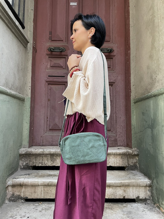 Bohem Süet Mini Deri Çanta – Ayarlanabilir Askılı - Yeşil