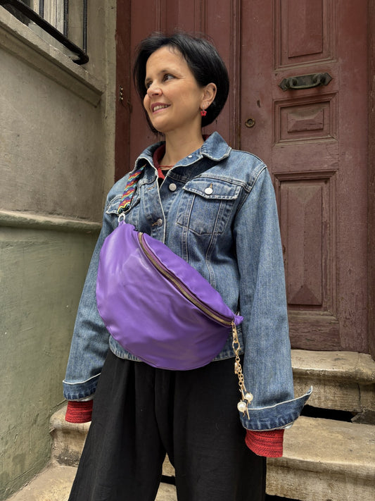 Ayarlanabilir Askılı Vegan Deri Bel ve Yan Çanta | Bohem Tarz ve Şıklık - Mor