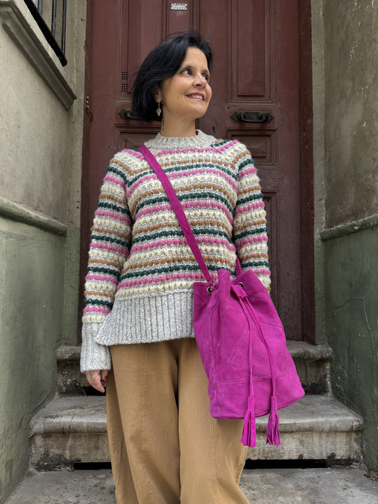 Doğal Süet Deri Omuz Çantası – Bohem Şıklığı - Fuşya