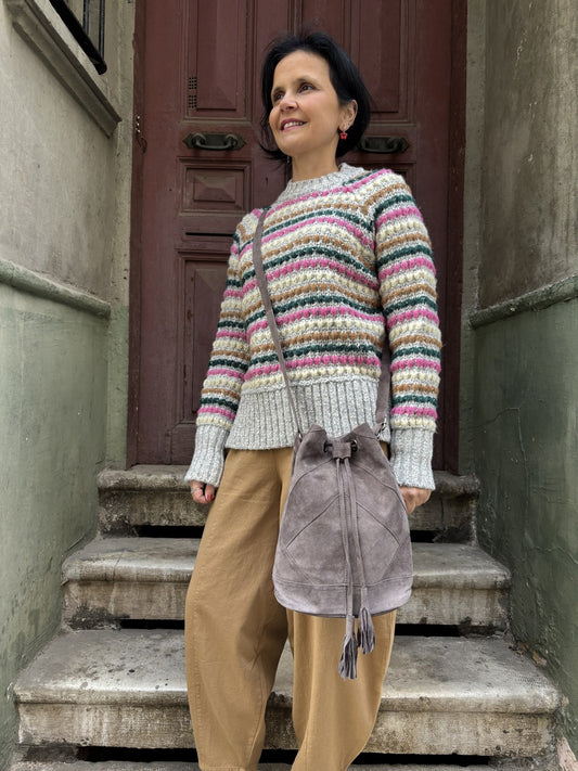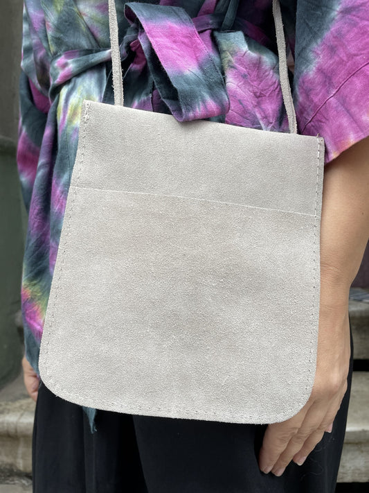 Doğal Süet Deri Omuz Çantası – Bohem Şıklığı - Vizon Gri