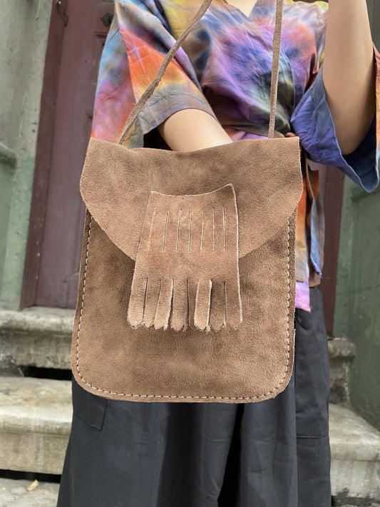 Gerçek Süet Deri Küçük Sırt Çantası – Bohem ve Şık Tasarım - Kahve