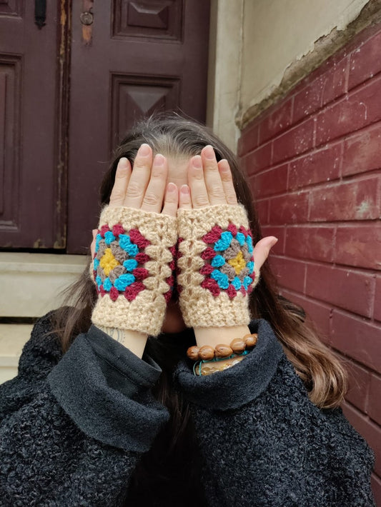 Bohem Motifli Parmaksız Turkuaz Eldiven