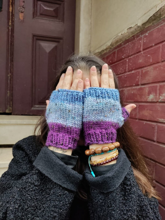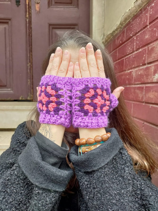 Bohem Etnik Desenli Yün Eflatun Eldiven