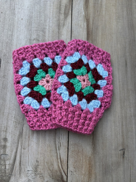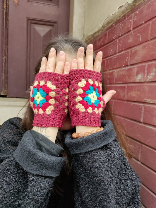 Bohem Motifli Parmaksız Eldiven - Pembe Mürdüm Mor