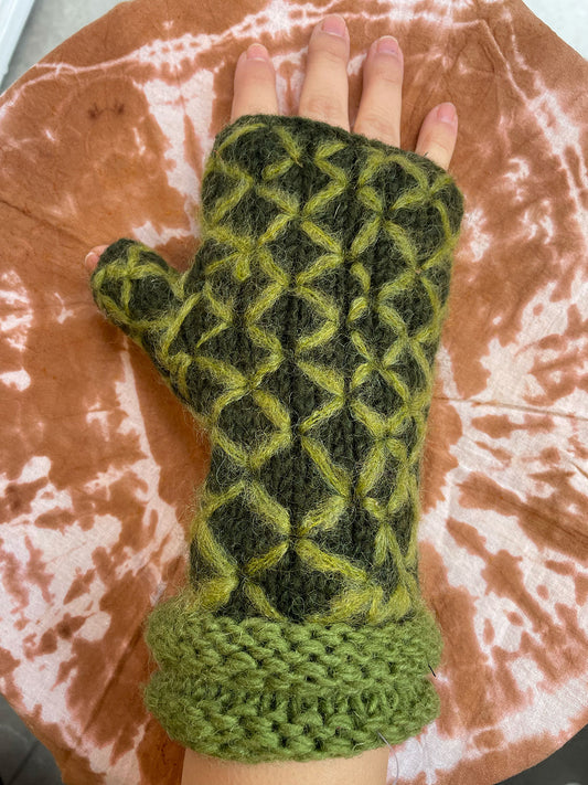 Etnik Desenli Açık Yeşil Yün Eldiven