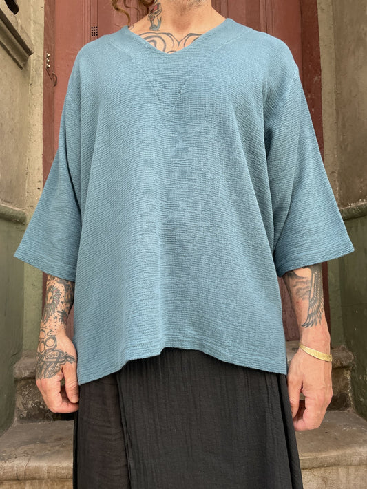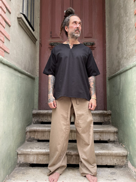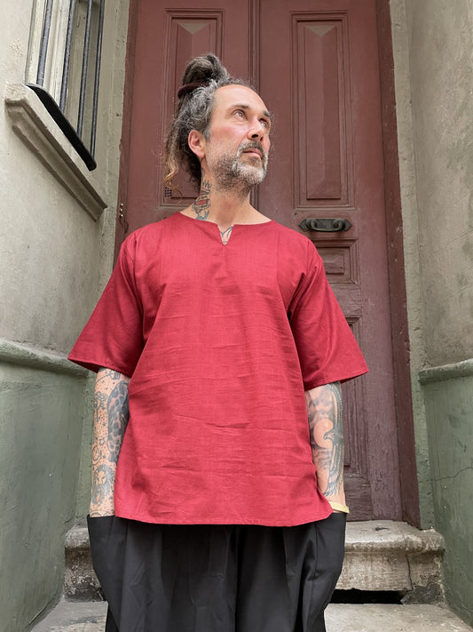 Bohem V Yaka Oversize Erkek Tişört Gömlek - Rahat ve Şık Organik Pamuk