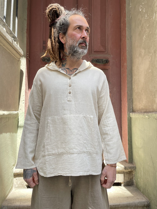 Unisex Bohem Kapüşonlu Erkek Gömlek – %100 Pamuk, Rahat Kalıp