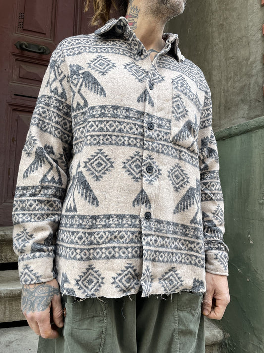 Erkek Kışlık Bohem Gömlek - Antrasit Aztek Etnik Desenli, Sıcak ve Şık