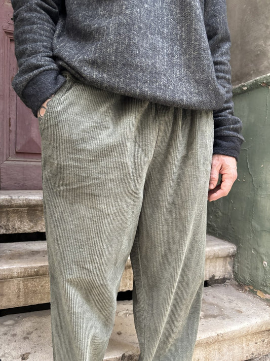 Erkek Kadife Bol Paça Pantolon – Haki | Mevsimlik, Rahat Kalıp