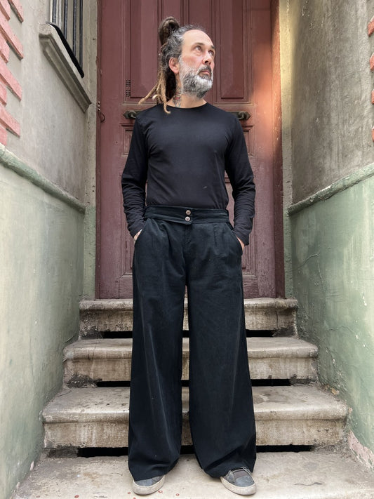 Erkek Kadife Bol Paça Pantolon – Siyah | Mevsimlik, Rahat Kalıp