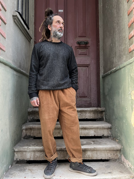 Erkek Kadife Bol Paça Pantolon – Kahverengi | Mevsimlik, Rahat Kalıp